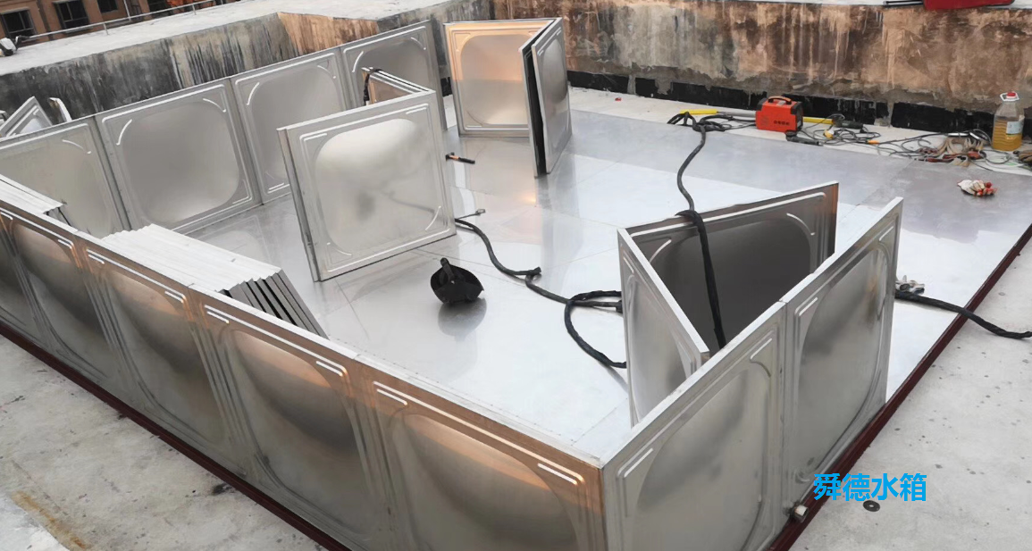 拆除舊水箱之后就進行新水箱的制作和安裝,先制安新的槽鋼底座并做防銹處理。在安裝箱體和水箱附件,安裝完成之后再將原管路與不銹鋼水箱連通,即完成水箱的拆除更新工作,新水箱經(jīng)過清洗消毒之后就可投入使用。