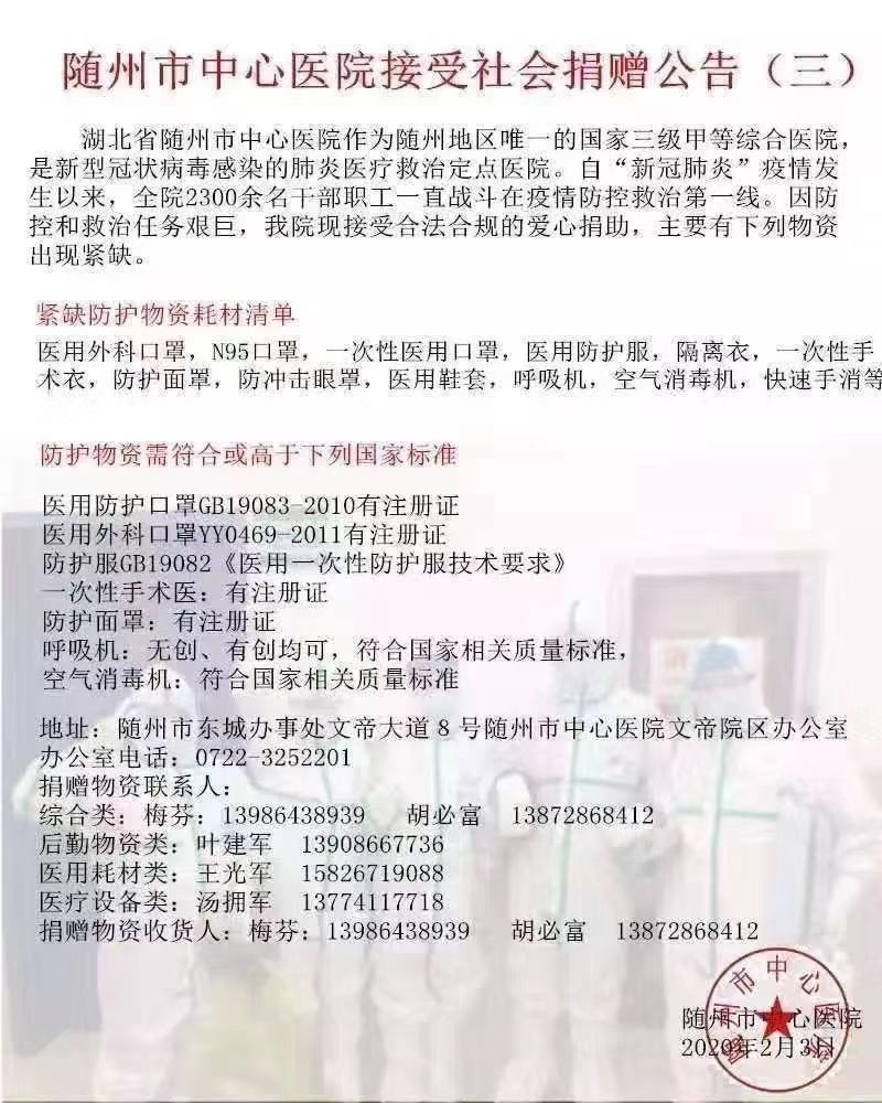 隨州市中心醫(yī)院接受社會(huì)捐贈(zèng)公告