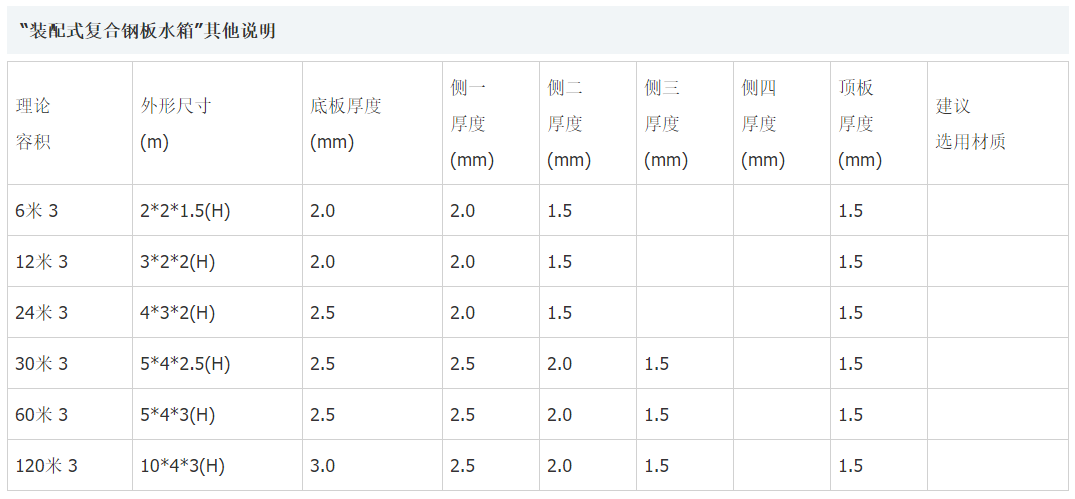 附:不銹鋼水箱常用規(guī)格及厚度說明