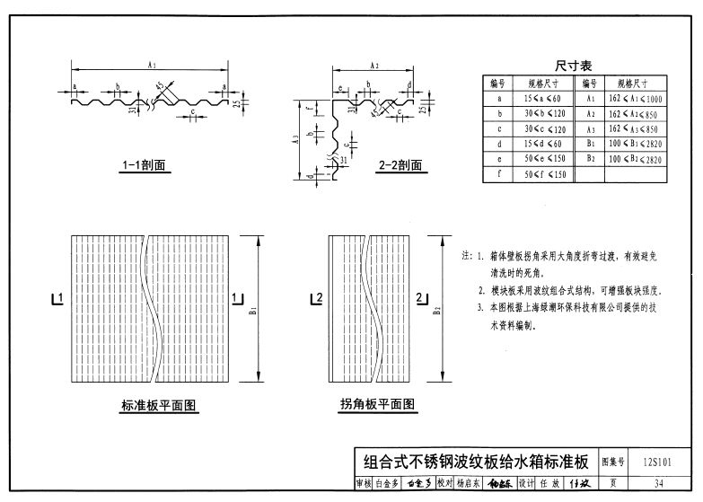 組合式不銹鋼波紋板給水箱標(biāo)準(zhǔn)板: