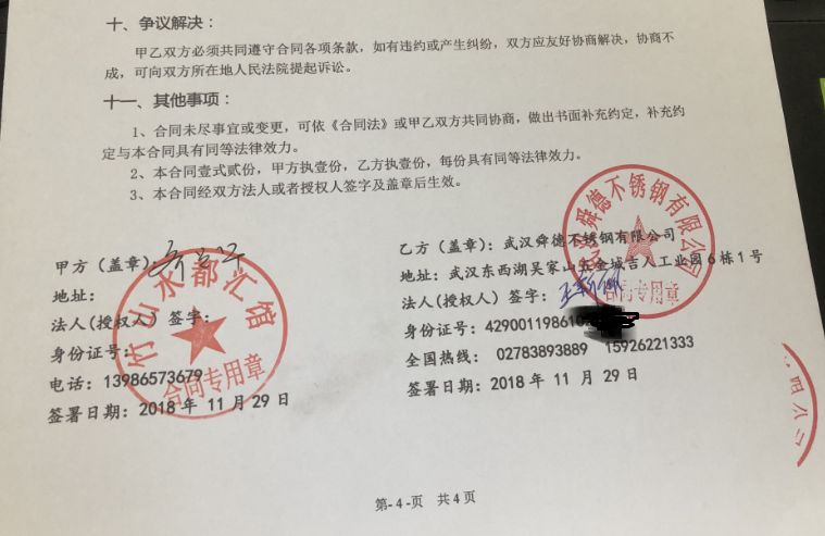 11月29日與十堰水都匯娛樂的齊總簽定二臺(tái)30噸不銹鋼保溫水箱和一臺(tái)10噸不銹鋼消防水箱,齊總要求不銹鋼保溫水箱內(nèi)外膽均采用優(yōu)質(zhì)SUS304不銹鋼板,含鎳量8%以上,保證鋼板永不生銹,防腐、耐用、發(fā)泡均勻、使用壽命可達(dá)15年以上。不銹鋼消防水箱要求外形美觀:安裝方便,工藝成熟,做工精細(xì),規(guī)格齊全,用途廣泛。我公司如期進(jìn)場(chǎng)安裝和驗(yàn)收,下面附合同及安裝完畢實(shí)物圖片。